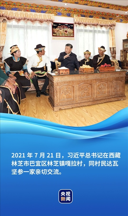 在同村民達(dá)瓦堅參一家親切交流時,總書記說:“鄉(xiāng)親們的好日子得益于黨和國家的好政策,也是你們自己用勤勞的雙手創(chuàng)造的。要落實好黨中央支持西藏發(fā)展政策,全面推進(jìn)鄉(xiāng)村振興。”
