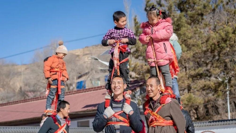 △寧夏固原市隆德縣觀莊鄉(xiāng)陽(yáng)洼村村民在排練扛社火。