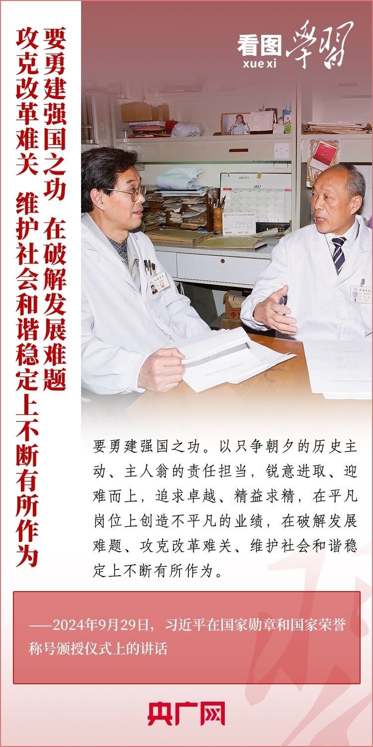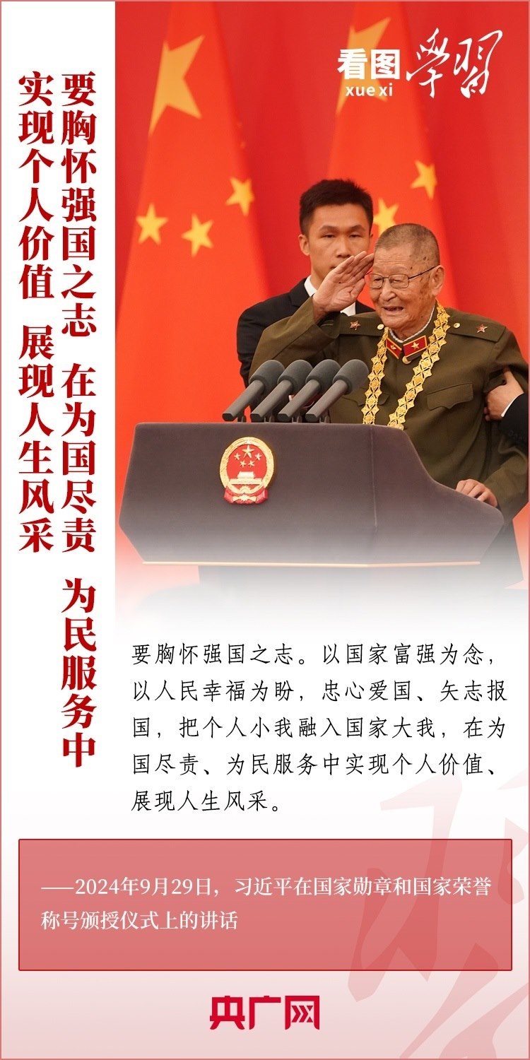 9月29日,中華人民共和國(guó)國(guó)家勛章和國(guó)家榮譽(yù)稱號(hào)頒授儀式在北京舉行,習(xí)近平總書記向國(guó)家勛章和國(guó)家榮譽(yù)稱號(hào)獲得者頒授勛章獎(jiǎng)?wù)虏l(fā)表重要講話??倳洀?qiáng)調(diào),全黨全國(guó)各族人民要以英雄模范為榜樣,團(tuán)結(jié)奮進(jìn)、砥礪前行,匯聚起共襄強(qiáng)國(guó)盛舉的磅礴力量。一起來學(xué)習(xí)!