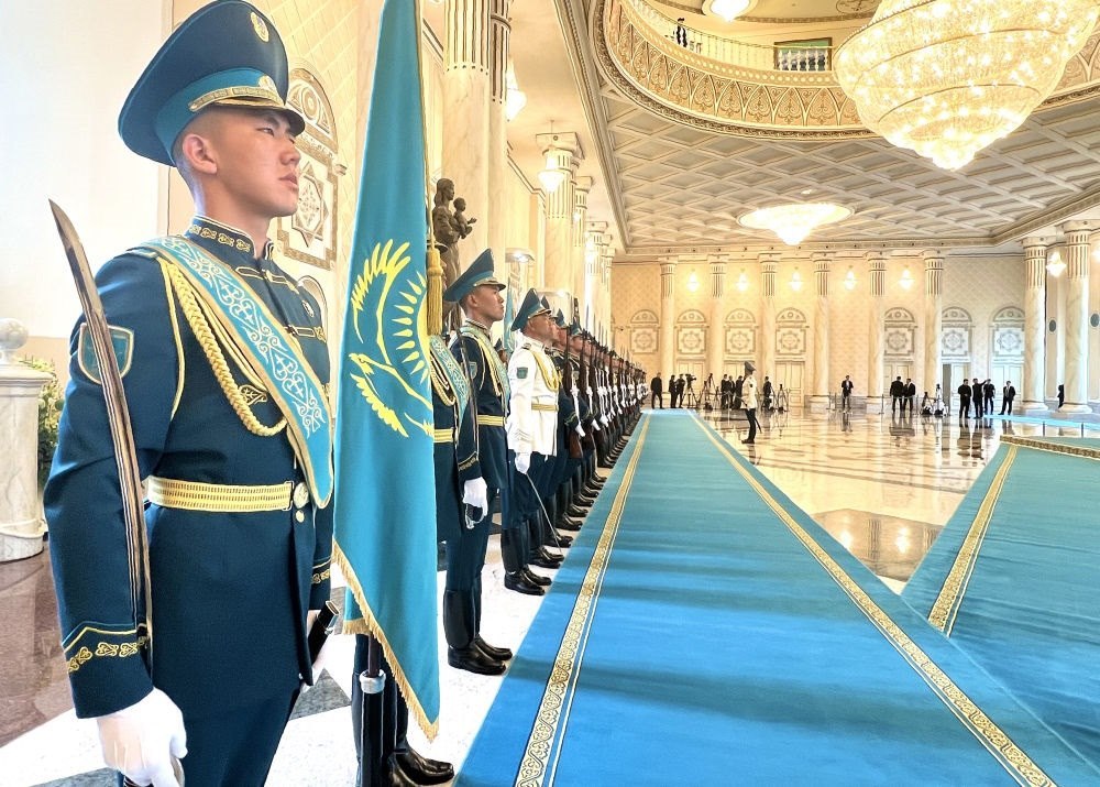 當(dāng)?shù)貢r(shí)間3日,國(guó)家主席習(xí)近平在阿斯塔納出席哈薩克斯坦總統(tǒng)托卡耶夫舉行的歡迎儀式。