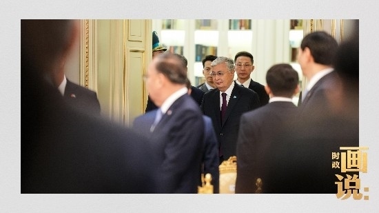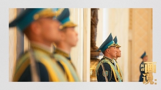當(dāng)?shù)貢r間3日,國家主席習(xí)近平在阿斯塔納出席哈薩克斯坦總統(tǒng)托卡耶夫在總統(tǒng)府舉行的歡迎儀式。習(xí)近平主席乘車抵達時,托卡耶夫總統(tǒng)熱情迎接,以最高禮儀歡迎習(xí)近平主席對哈薩克斯坦進行國事訪問。