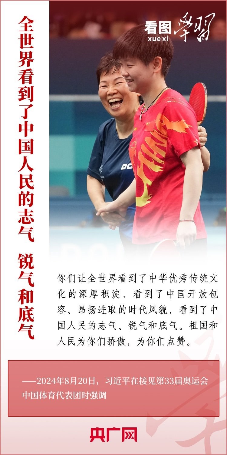 “祖國(guó)和人民為你們驕傲,為你們點(diǎn)贊。”8月20日,習(xí)近平總書(shū)記在人民大會(huì)堂接見(jiàn)第33屆奧運(yùn)會(huì)中國(guó)體育代表團(tuán)并發(fā)表重要講話。總書(shū)記高度肯定中國(guó)體育代表團(tuán)取得的優(yōu)異成績(jī),贊揚(yáng)他們充分彰顯了新時(shí)代中國(guó)力量、生動(dòng)詮釋了新時(shí)代中國(guó)精神、充分展現(xiàn)了新時(shí)代中國(guó)形象,勉勵(lì)大家戒驕戒躁、再接再厲,為建設(shè)體育強(qiáng)國(guó)再立新功。一起來(lái)學(xué)習(xí)!