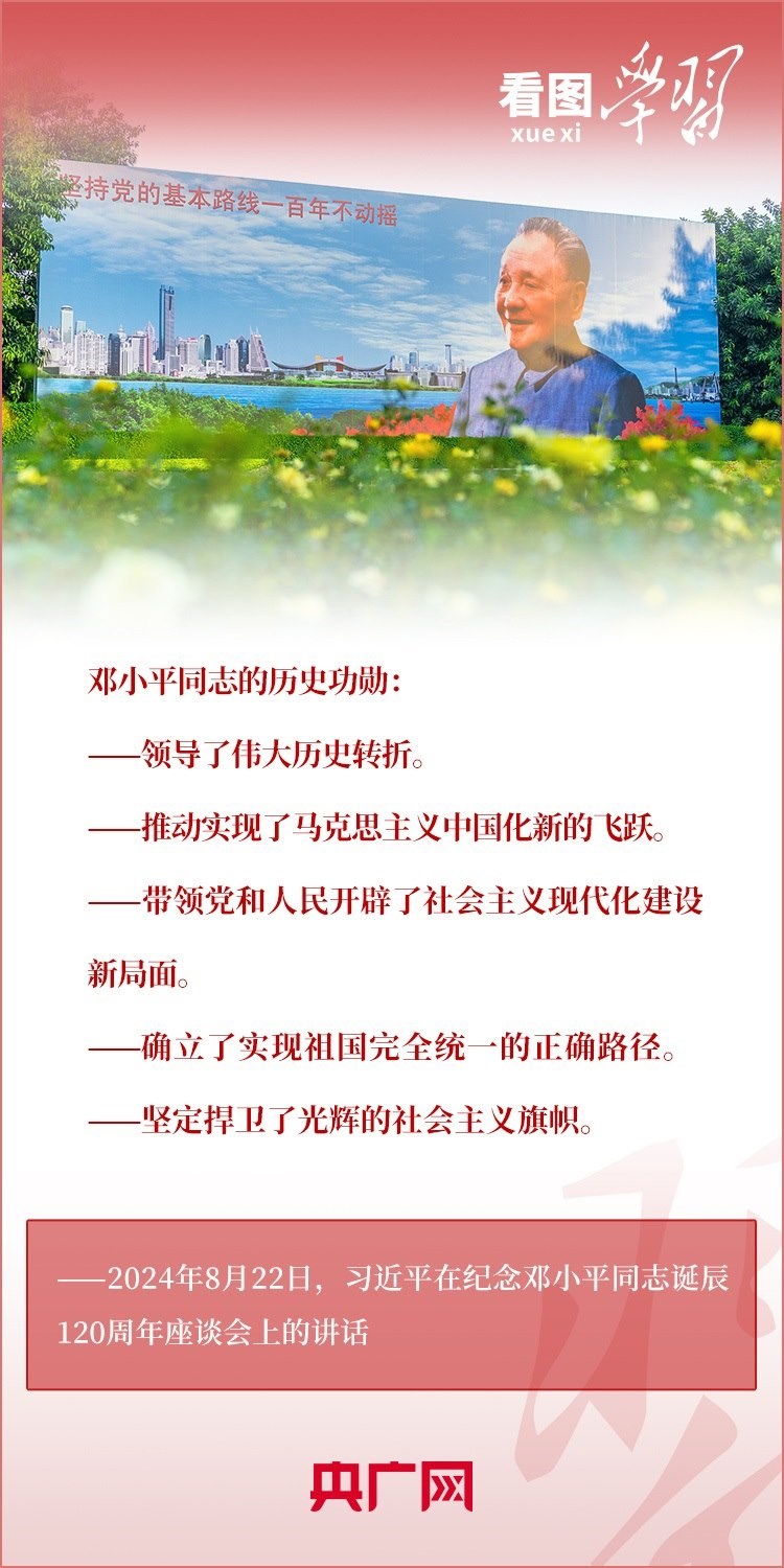 8月22日,習(xí)近平總書記在紀(jì)念鄧小平同志誕辰120周年座談會上發(fā)表重要講話指出,鄧小平同志的歷史功勛是全方位的、開創(chuàng)性的,對中國和世界的影響是深刻的、長遠(yuǎn)的??倳洀?qiáng)調(diào),對鄧小平同志最好的紀(jì)念,就是把他開創(chuàng)的中國特色社會主義事業(yè)繼續(xù)推向前進(jìn)。我們要緊緊圍繞以中國式現(xiàn)代化全面推進(jìn)強(qiáng)國建設(shè)、民族復(fù)興偉業(yè)這個中心任務(wù),繼往開來,奮發(fā)進(jìn)取。一起來學(xué)習(xí)!