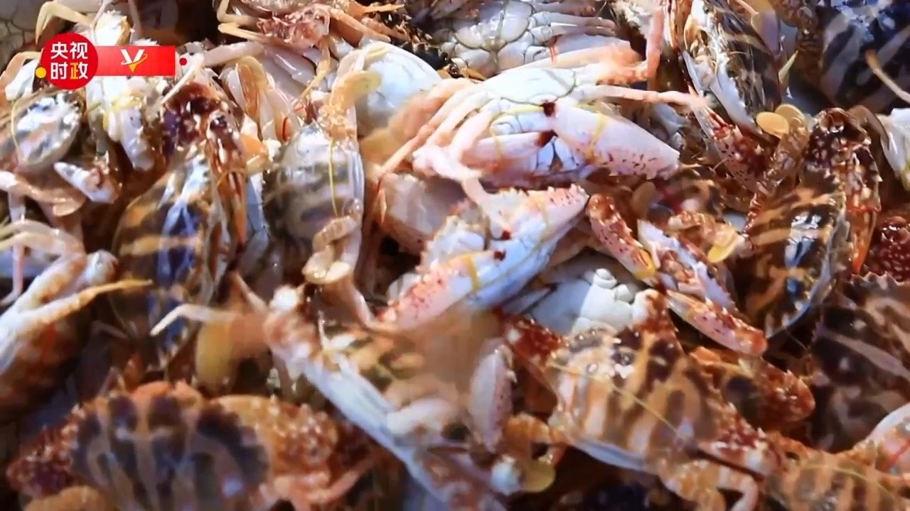 碼頭邊的海鮮市場(chǎng),村民們高興地向總書(shū)記講述大海的饋贈(zèng)。