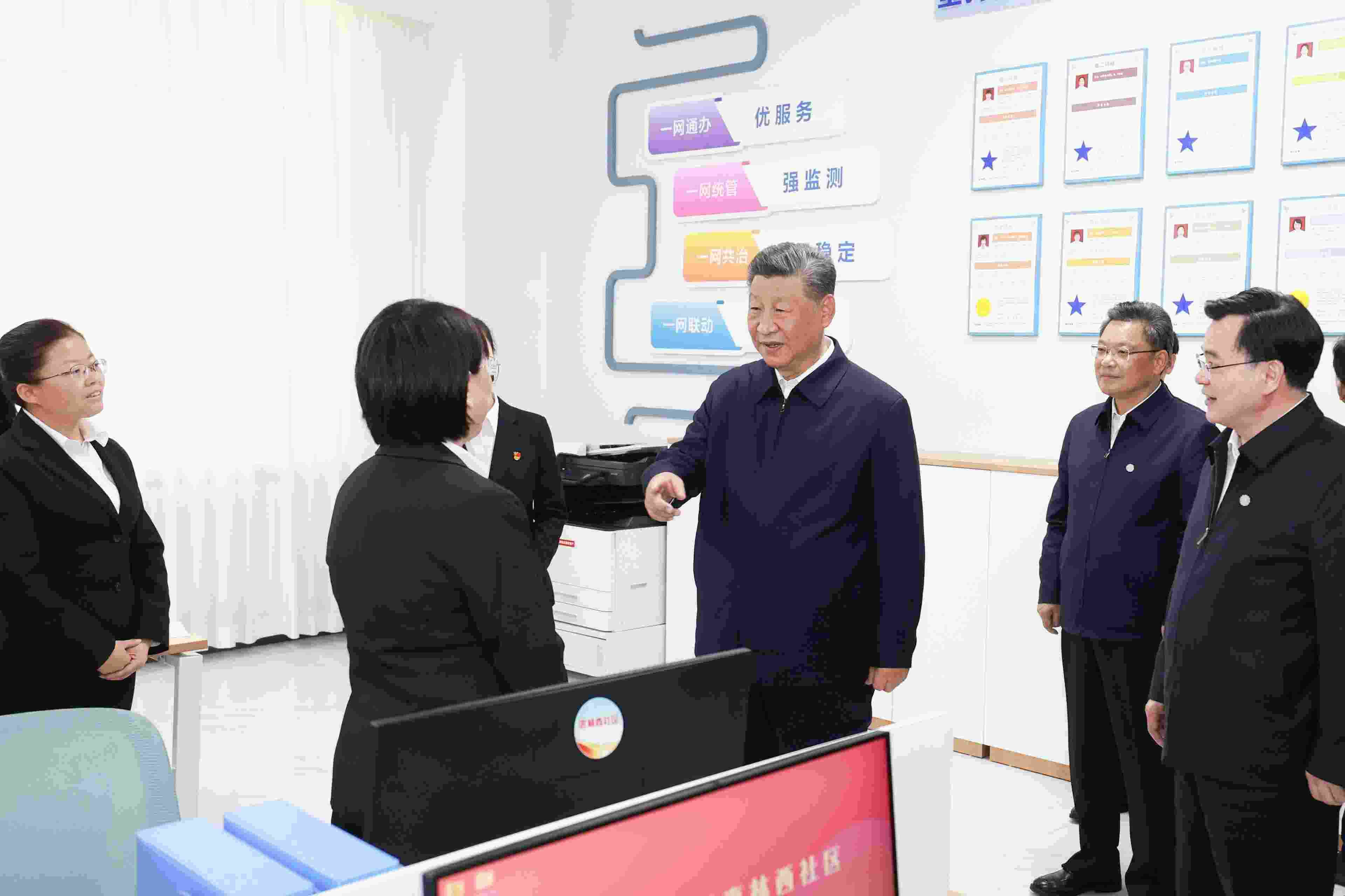 學(xué)院的電子屏幕上,展示了該校畢業(yè)生去向落實(shí)率的柱狀圖,總書記仔細(xì)察看,反復(fù)詢問具體數(shù)據(jù)。