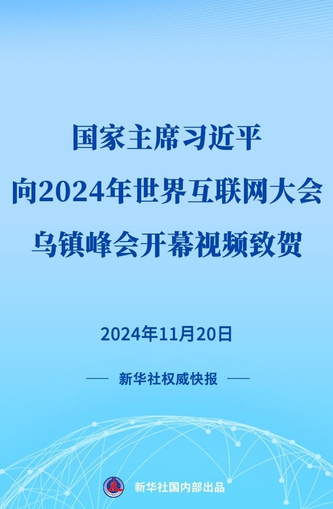 11月20日,國家主席習(xí)近平向2024年世界互聯(lián)網(wǎng)大會(huì)烏鎮(zhèn)峰會(huì)開幕視頻致賀。