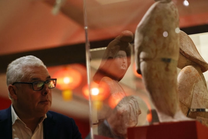 2024年11月18日,在位于法國(guó)巴黎的吉美國(guó)立亞洲藝術(shù)博物館,一名觀眾參觀“中國(guó)·唐——一個(gè)多元開放的朝代(7至10世紀(jì))”展覽。新華社記者 高靜 攝