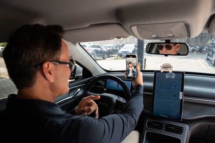 2024年9月2日,巴西網(wǎng)紅費(fèi)利佩·費(fèi)拉在里約熱內(nèi)盧的汽車改裝店中錄制視頻。費(fèi)拉是一名粉絲超過400萬(wàn)、專門做汽車銷售和改裝的網(wǎng)紅,由于他經(jīng)常推薦純電動(dòng)或者混合動(dòng)力新款車型,也被稱為巴西新能源車“民間大使”。每逢周末,費(fèi)拉都會(huì)受邀去各品牌的4S店,包括中國(guó)品牌比亞迪在內(nèi)的多家在巴車企都與他簽約,在門店開業(yè)或新車型上市時(shí)邀請(qǐng)他出席。新華社記者 王天聰 攝