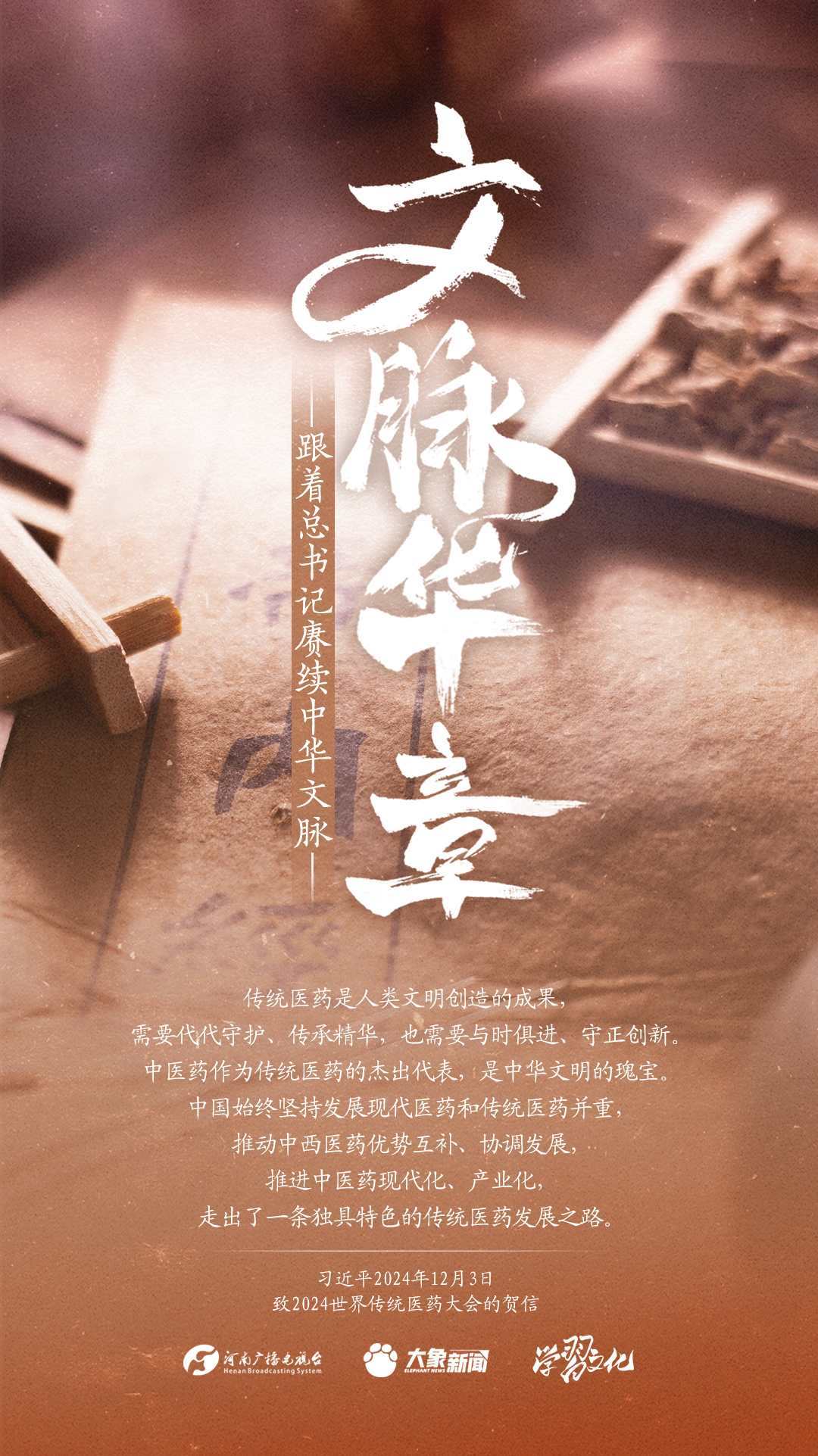 習(xí)近平總書記高度重視中華優(yōu)秀傳統(tǒng)文化的繼承和弘揚(yáng)。2024年,總書記一如既往,念茲在茲。在赴地方考察、主持召開重要會議等眾多場合,多次對傳承發(fā)展中華優(yōu)秀傳統(tǒng)文化作出重要講話重要指示。大象新聞邀您一起,跟著總書記賡續(xù)中華文脈,推動中華優(yōu)秀傳統(tǒng)文化創(chuàng)造性轉(zhuǎn)化和創(chuàng)新性發(fā)展,在新的起點(diǎn)上繼續(xù)推動文化繁榮、建設(shè)文化強(qiáng)國、建設(shè)中華民族現(xiàn)代文明。