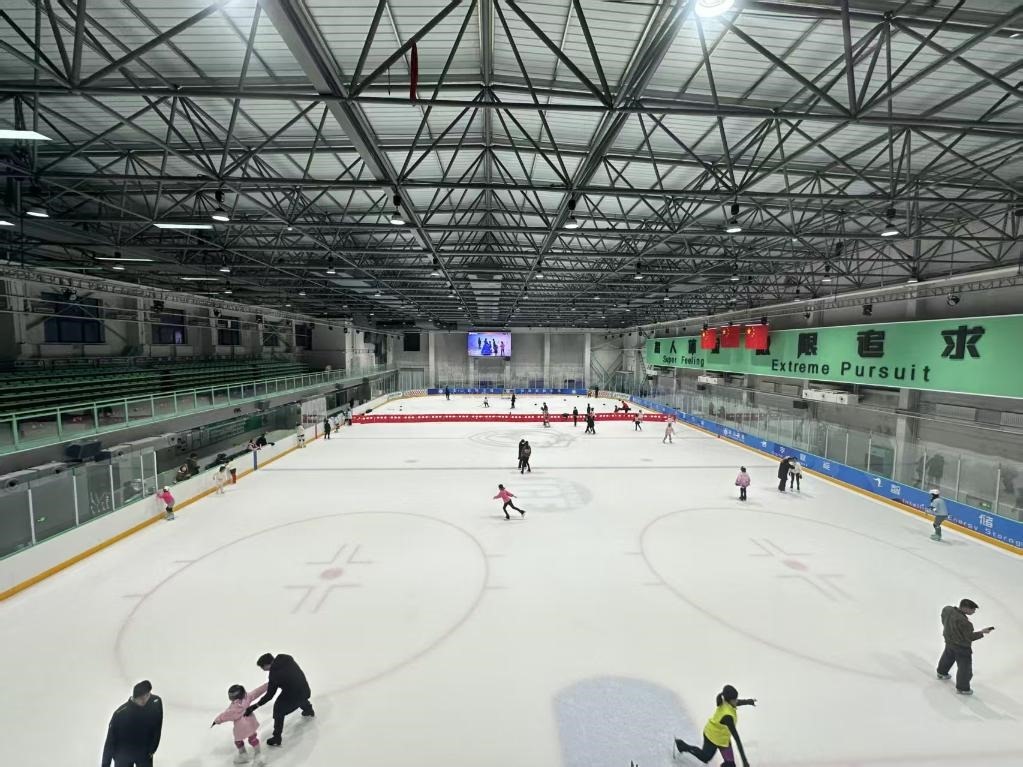 2025年1月,市民在大連冰熊冰上運(yùn)動(dòng)中心冰場(chǎng)運(yùn)動(dòng)。該冰場(chǎng)應(yīng)用了大連冰山集團(tuán)研制的制冰制冷控制系統(tǒng)。(孫濤 攝)