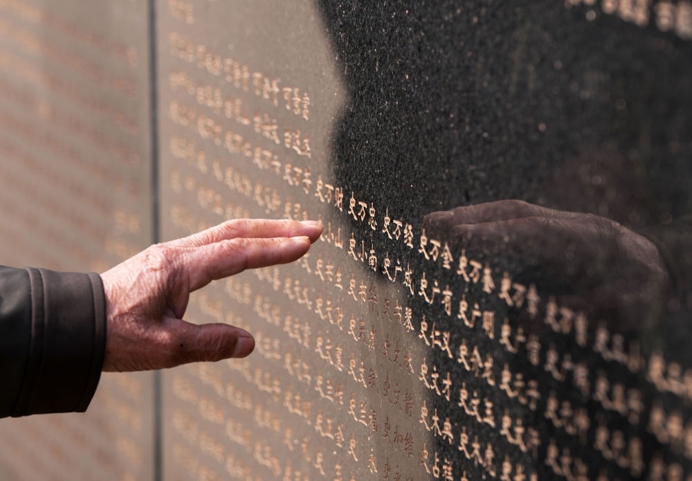 這里鮮紅底色閃耀??姑涝沂苛陥@長(zhǎng)眠著邱少云、黃繼光等家喻戶曉的志愿軍烈士。
