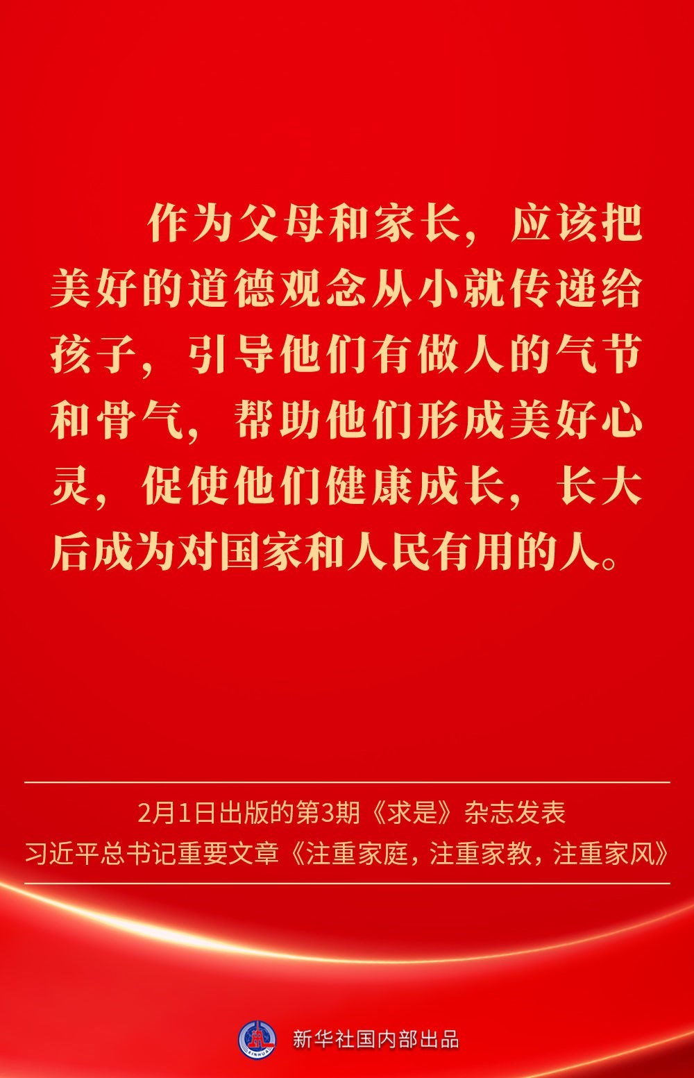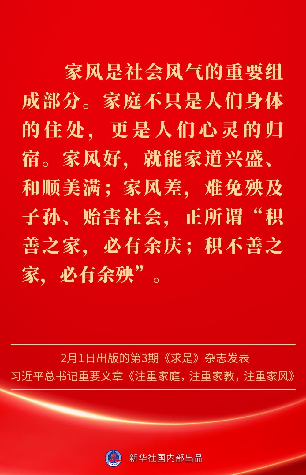 萬家團圓共慶新春佳節(jié)之際,2月1日出版的第3期《求是》雜志發(fā)表習近平總書記重要文章《注重家庭,注重家教,注重家風》。為什么要注重家庭、家教、家風?如何做好家庭文明建設?習近平總書記這樣闡述——