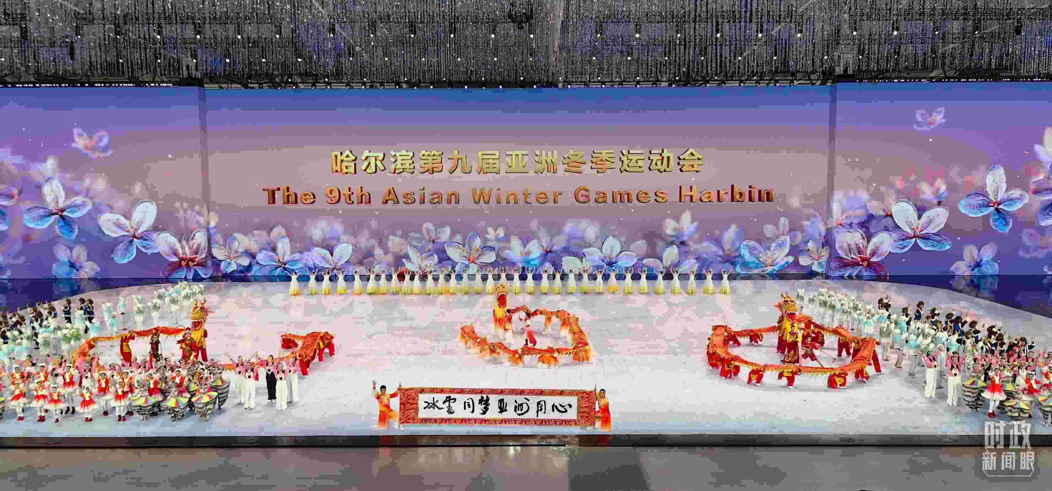 開幕式以“哈爾濱、中國、亞洲”的地域遞進層次展開。一盞冰燈映照新春,講述從啟夢、追夢到圓夢的冰雪夢想。從“冰晶藍”到“中國紅”,旋轉的“冰凌花”盡顯喜迎八方賓朋的熱情。