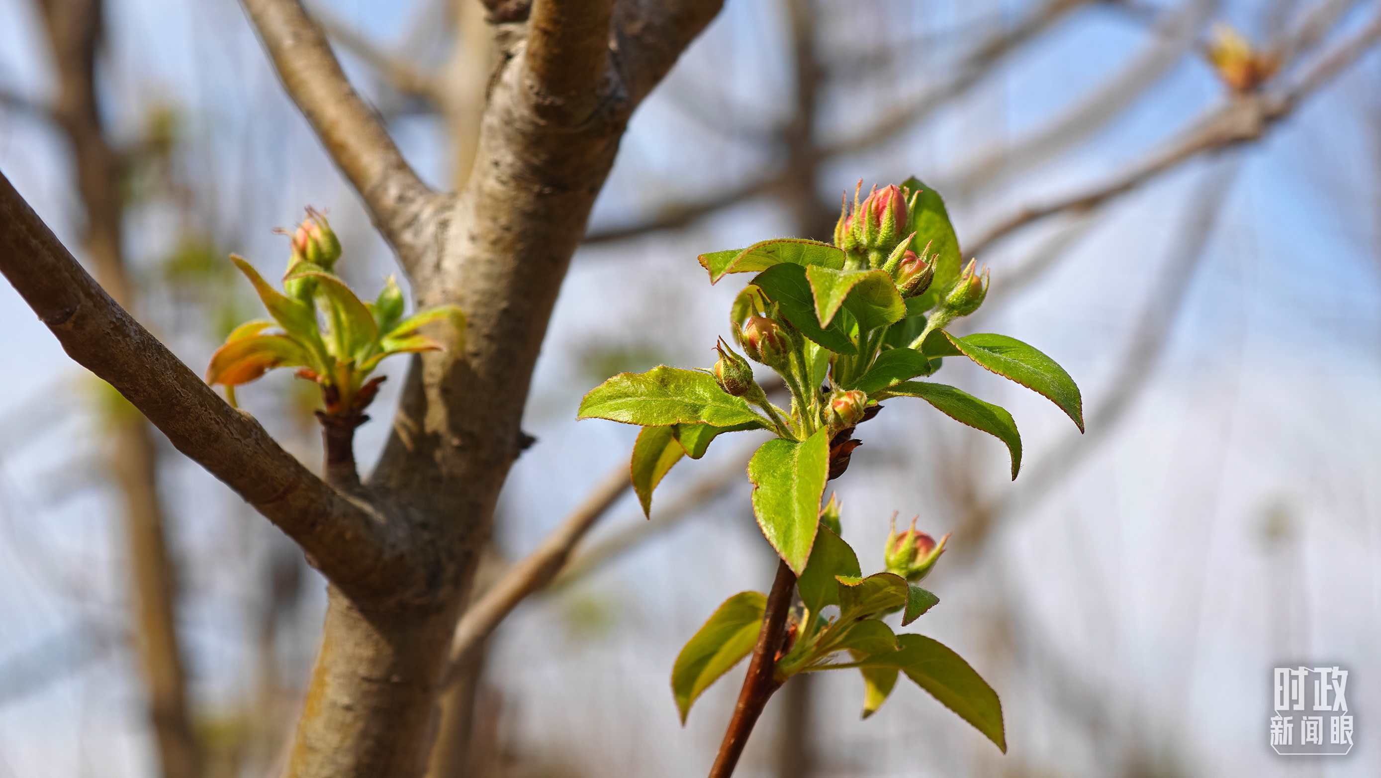 △永定河畔植樹點(diǎn),春意上枝頭。(總臺央視記者胡瑋、程鋮拍攝)