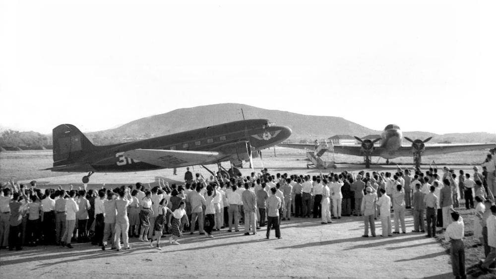1956年4月24日,從中國廣州經(jīng)南寧至越南河內(nèi)的民用航線正式通航。這是首航飛機(jī)準(zhǔn)備起飛。