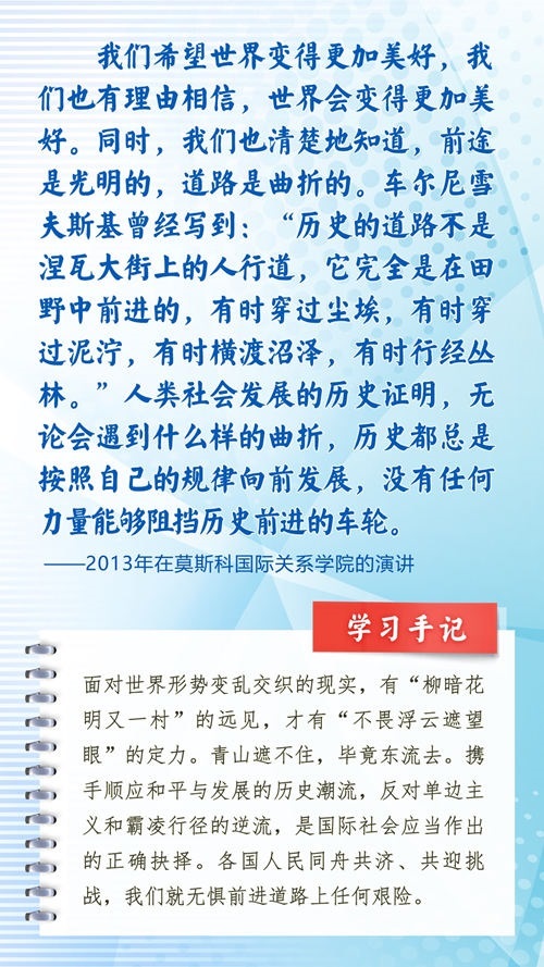 我們一起來學(xué)習(xí)品讀這些飽含哲思的論述,從中感悟新時代中俄關(guān)系在復(fù)雜的外部環(huán)境下堅毅前行之道,感悟習(xí)近平主席作為大黨大國領(lǐng)袖、世界級領(lǐng)袖的時代擔(dān)當(dāng)與天下情懷。