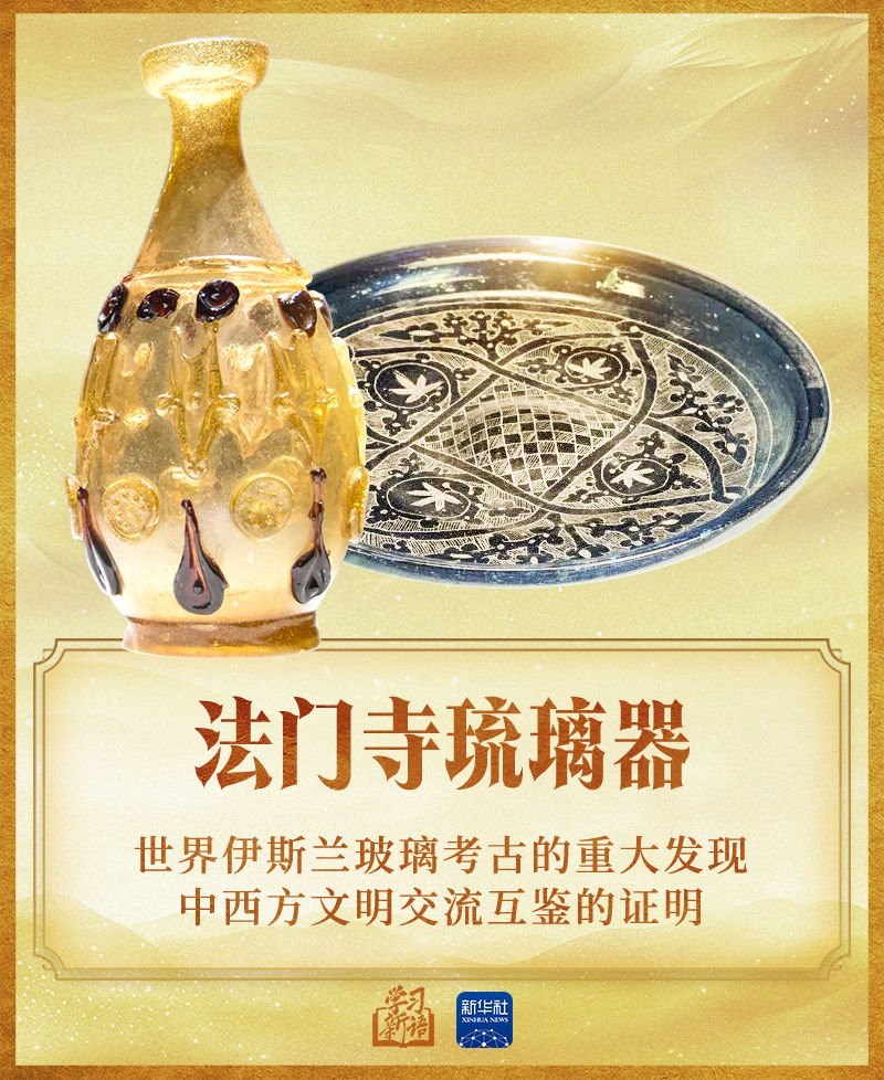 2014年3月,習(xí)近平主席在巴黎聯(lián)合國教科文組織總部發(fā)表演講時,特別提到了1987年在陜西法門寺地宮中出土的20件精美的琉璃器,這是唐代傳入中國的東羅馬和伊斯蘭的琉璃器。他說:“我在欣賞這些域外文物時,一直在思考一個問題,就是對待不同文明,不能只滿足于欣賞它們產(chǎn)生的精美物件,更應(yīng)該去領(lǐng)略其中包含的人文精神”。