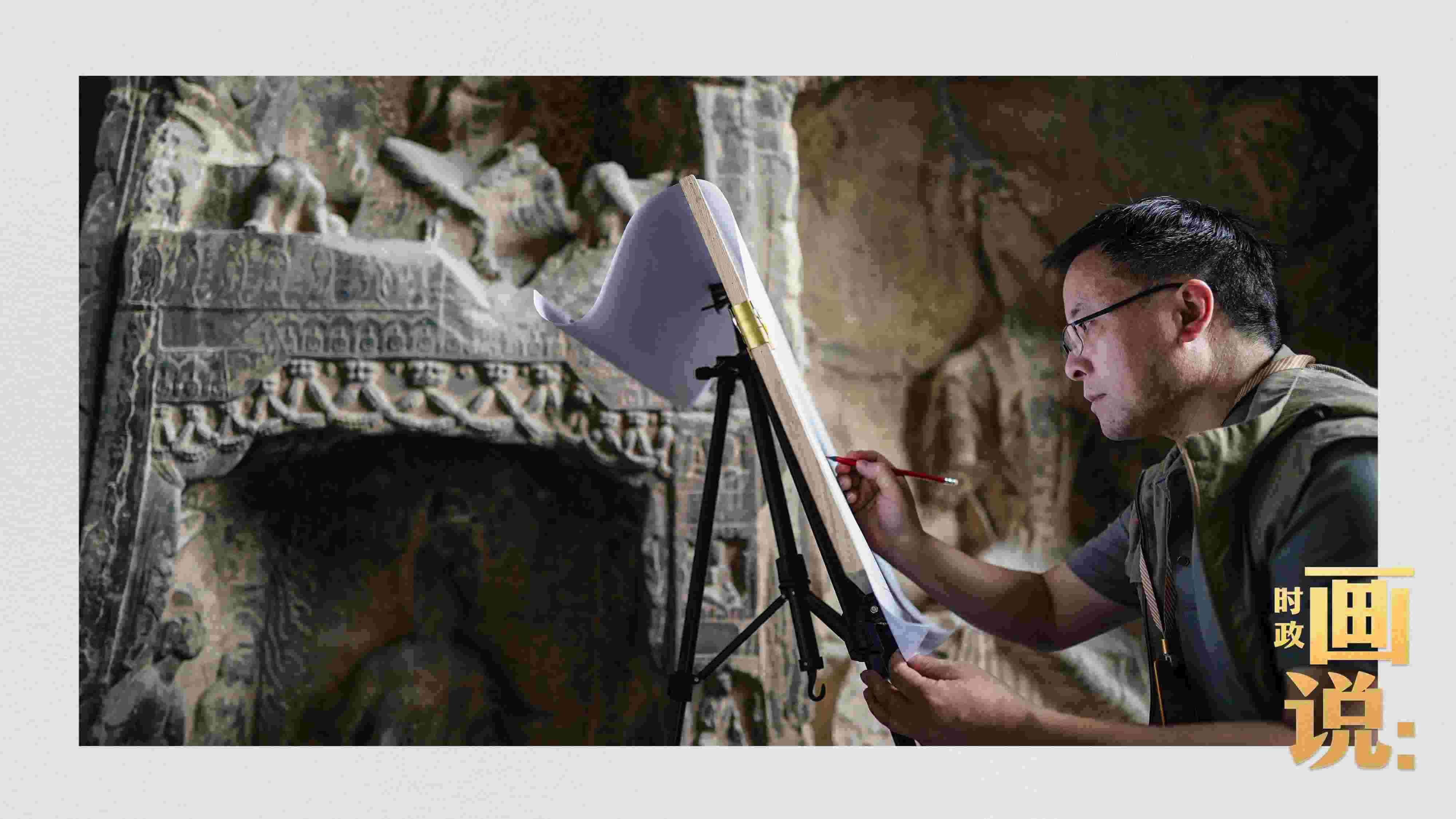 △工作人員在對石刻病害情況進(jìn)行詳細(xì)記錄