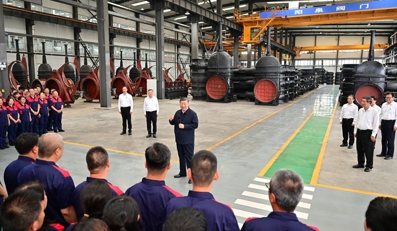 7月7日至8日,中共中央總書記、國家主席、中央軍委主席習近平在山西考察。這是7日下午,習近平在陽泉閥門股份有限公司考察。新華社記者 謝環(huán)馳 攝