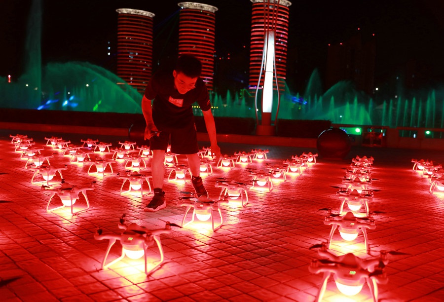 超震撼!500架無(wú)人機(jī)扮靚青城夜空