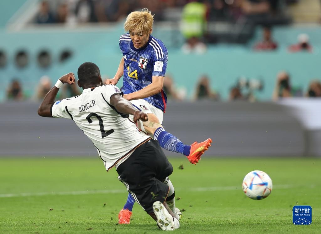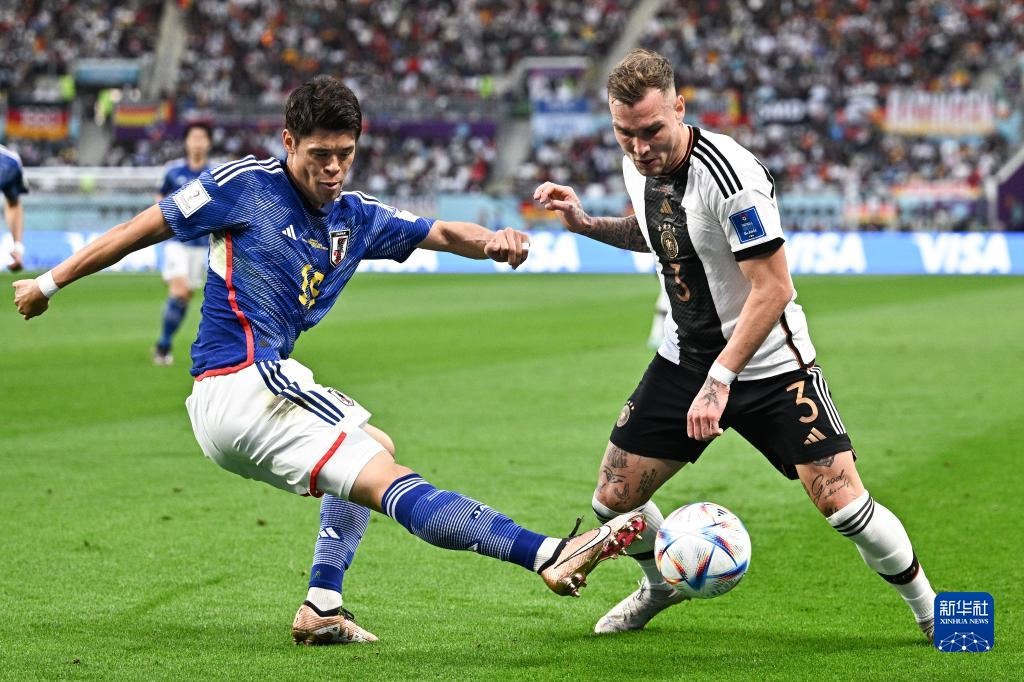 當(dāng)日,在卡塔爾多哈哈里發(fā)國際體育場進行的2022卡塔爾世界杯足球賽E組比賽中,日本隊以2比1戰(zhàn)勝德國隊。