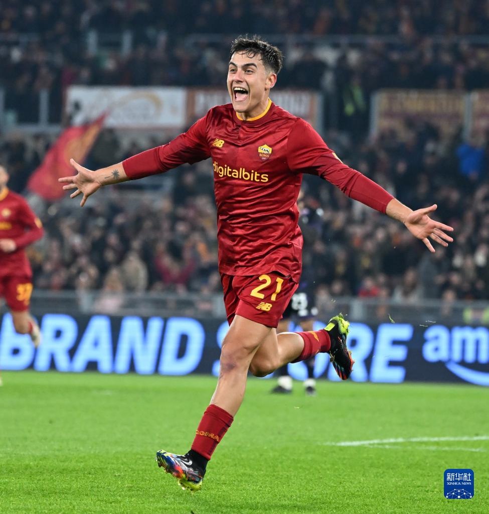 1月15日,羅馬隊(duì)球員迪巴拉進(jìn)球后慶祝。新華社發(fā)(阿爾貝托·林格利亞攝)