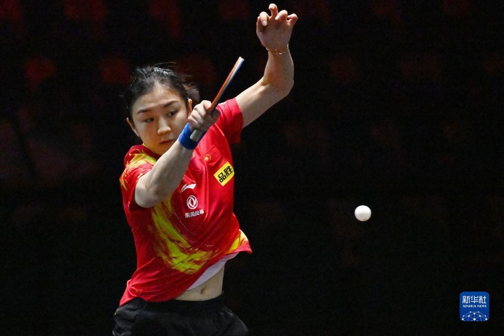 3月13日,陳夢在比賽中回球。新華社發(fā)(鄧智煒攝)