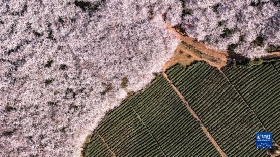 近日,貴州省貴安新區(qū)櫻花園內(nèi)的2.4萬畝櫻花競相綻放,如雪似霞,吸引游客前來賞花觀光。