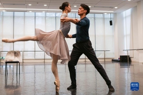 4月13日,上海芭蕾舞團副團長、首席主要演員吳虎生和主要演員戚冰雪在排練芭蕾舞劇《歌劇魅影》。