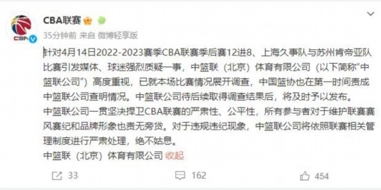 隨后,CBA官方也作出回應(yīng)。