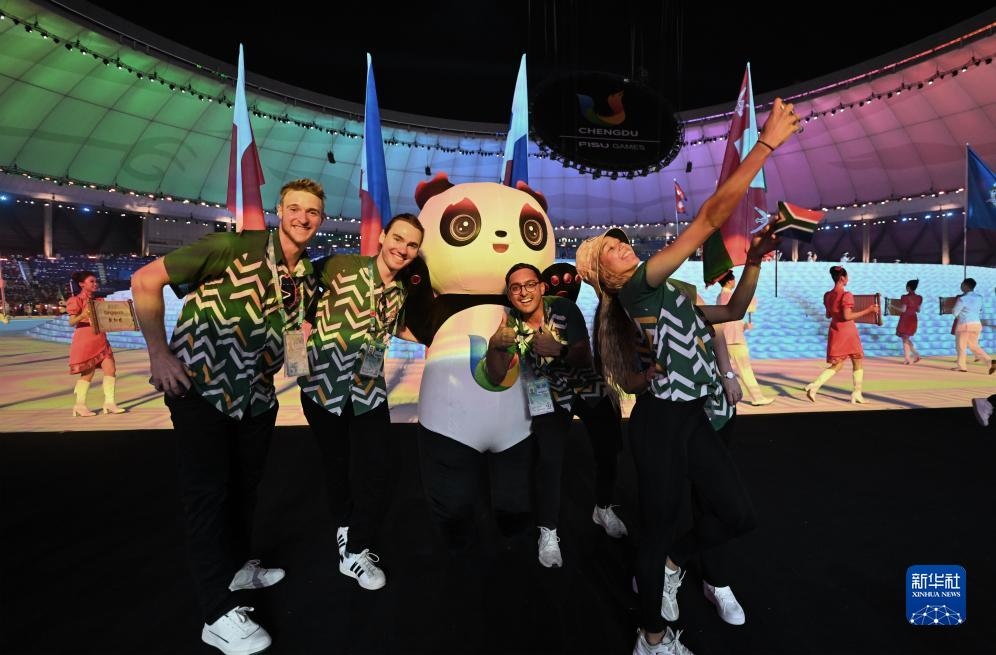 7月28日,南非大學(xué)生體育代表團(tuán)在開幕式上入場。