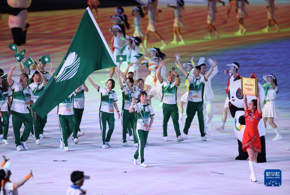 7月28日,中國澳門大學(xué)生體育代表團(tuán)在開幕式上入場。