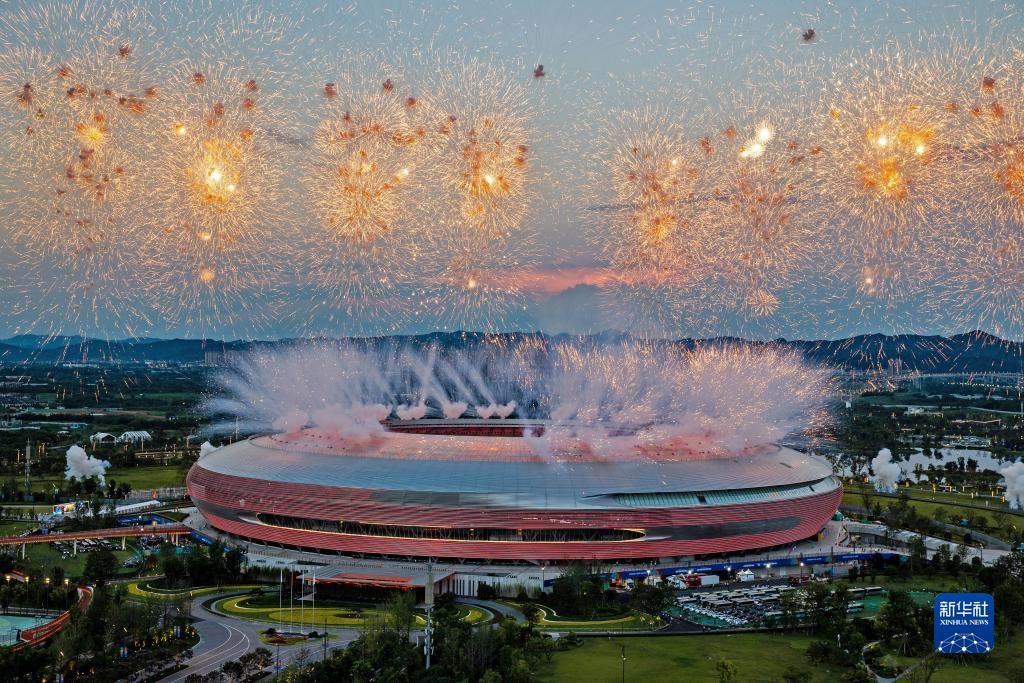 當(dāng)晚,第31屆世界大學(xué)生夏季運(yùn)動會開幕式在成都東安湖體育公園主體育場舉行。