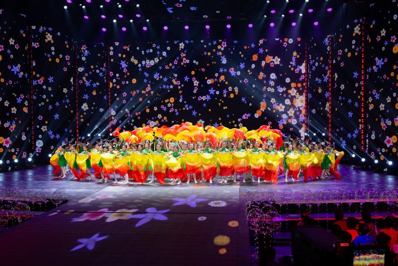 在節(jié)目的選擇和編排上,突出少年兒童的個(gè)性和特點(diǎn),大體量的群體歌舞節(jié)目貫穿整場晚會(huì),營造出濃濃的節(jié)日氣氛。民族舞、現(xiàn)代舞、街舞、雜技同臺炫技,熱鬧熱烈。