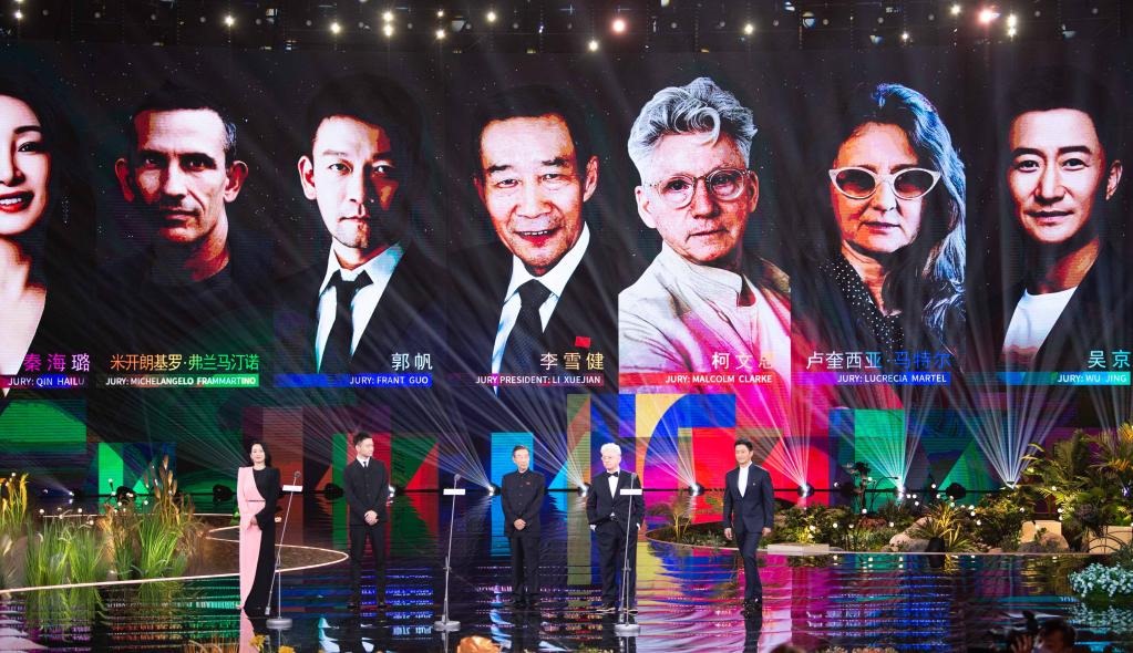 “天壇獎(jiǎng)”國際評(píng)委會(huì)亮相第十二屆北京國際電影節(jié)開幕式。新華社記者 陳鐘昊攝