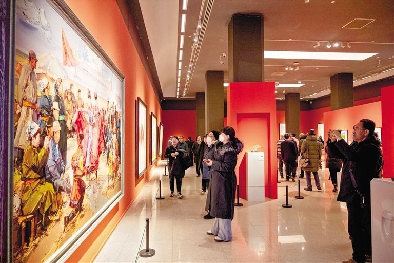 12月30日,元旦假期第一天,中國美術館內“蒙古馬精神——內蒙古美術攝影作品展”前來觀展的觀眾絡繹不絕。展出的130多件藝術作品生動反映了內蒙古各族人民牢記囑托、感恩奮進,努力完成習近平總書記交給內蒙古的五大任務和全方位建設模范自治區(qū)的火熱實踐,全面展示了內蒙古壯美和美善美、可信可親可愛的新時代形象。
