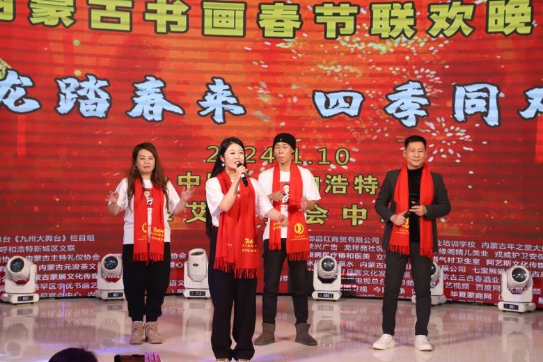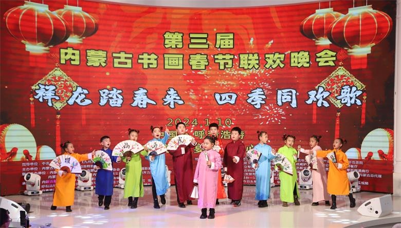 北疆新聞呼和浩特消息 1月10日,以“祥龍?zhí)ご簛?lái) 四季同歡歌”為主題的第三屆內(nèi)蒙古書畫春節(jié)聯(lián)歡晚會(huì)在呼和浩特圓滿舉行。本次晚會(huì)匯聚了近500位內(nèi)蒙古老中青書畫家、演藝明星、政企嘉賓以及熱愛中國(guó)傳統(tǒng)文化的社會(huì)各界愛心人士代表,用書畫、歌舞、相聲等豐富多彩的形式,總結(jié)2023,展望2024。