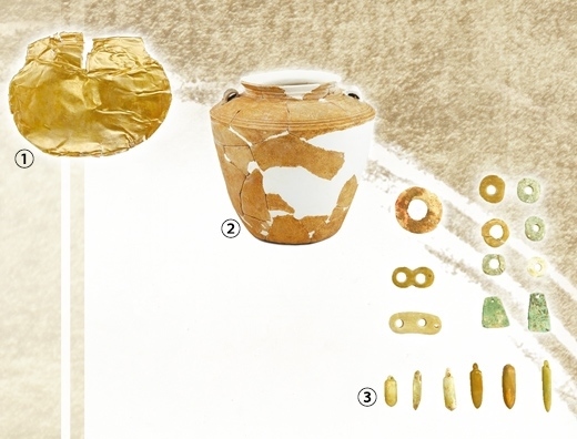 圖①:鄭州商都書院街墓地出土的金覆面。