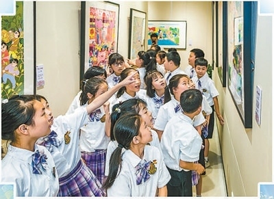 學(xué)生們在余東村美術(shù)館參觀。李 東攝