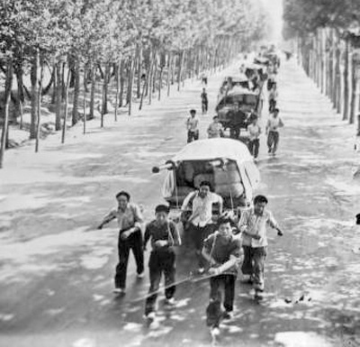 賀貴鑫1970年入團(tuán),當(dāng)時(shí)年富力強(qiáng)的他,成了8號(hào)板車的主力車手。說是車手,其實(shí)更像纖夫。老人從口袋里摸出一張劇團(tuán)老照片,給記者看。泛黃的黑白照片中,一眾演員拽著繩索、拉著板車,行進(jìn)在鄉(xiāng)間小路上。身后板車上,裝滿戲服、道具和鍋灶等物品。