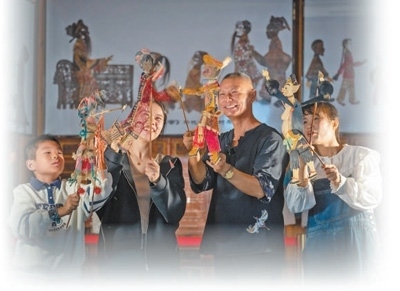 安徽宣城宣州區(qū)水東鎮(zhèn),游客正在體驗皮影戲。李曉紅攝(影像中國)