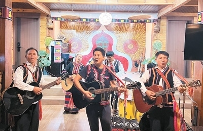 在云南省瀾滄拉祜族自治縣,拉祜族房東扎努的民宿在國(guó)慶節(jié)假期迎來(lái)滿房。今年4月,扎努改造自家老房子,把民族音樂(lè)與民宿相結(jié)合,開(kāi)了一家音樂(lè)民宿——拉祜音宿?!袄镒迨悄芨枭莆璧拿褡?。我喜歡與人交流,喜歡鄉(xiāng)村風(fēng)光和家鄉(xiāng)氣候,所以選擇回鄉(xiāng)開(kāi)民宿?!弊鳛榉繓|,扎努常常帶游客一起唱歌跳舞,表演他創(chuàng)作的《我在瀾滄等你》《快樂(lè)拉祜》等歌曲,并向他們介紹拉祜族的民族歷史和文化。
