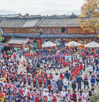 麗江古城涵蓋了作為茶馬古道重鎮(zhèn)的大研古城、從農(nóng)耕文明向商業(yè)文明過(guò)渡的“活標(biāo)本”束河古鎮(zhèn)、有著原生態(tài)納西村落的白沙古鎮(zhèn),融匯了漢族、白族、彝族、藏族、納西族等多民族文化特色。作為一座沒(méi)有城墻的古城,麗江古城以包容與開(kāi)放的姿態(tài),歷經(jīng)文化的交融與碰撞,源源不斷地孕育出充滿(mǎn)魅力的文化新形態(tài)。