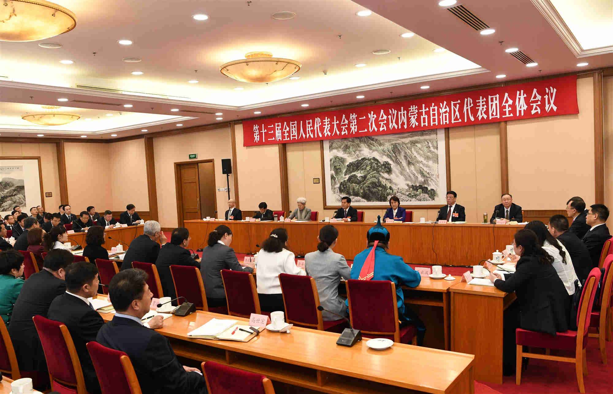 十三屆全國人大二次會議內(nèi)蒙古代表團(tuán)召開全團(tuán)會議