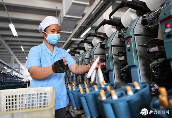 2月18日,已返崗的工人戴著口罩在福建省福州市長(zhǎng)樂(lè)區(qū)正隆紡織有限公司紡織車間里工作。新華社記者 魏培全 攝