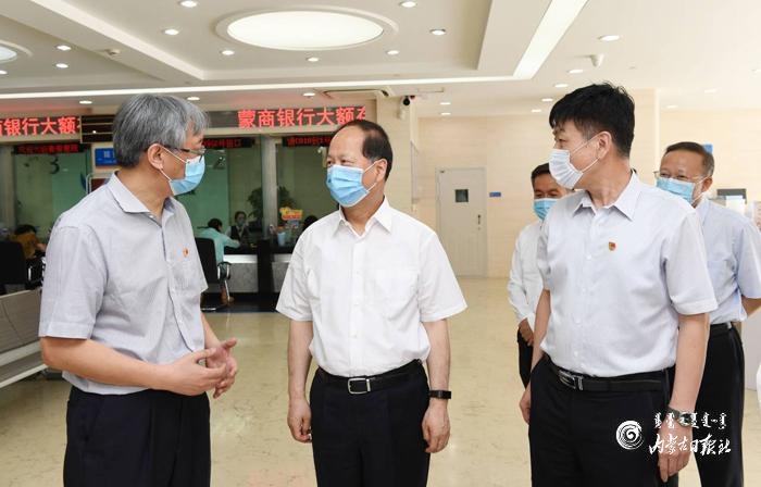 7月13日,自治區(qū)黨委書記、人大常委會(huì)主任石泰峰來到蒙商銀行新城支行調(diào)研。內(nèi)蒙古日?qǐng)?bào)記者 袁永紅 攝