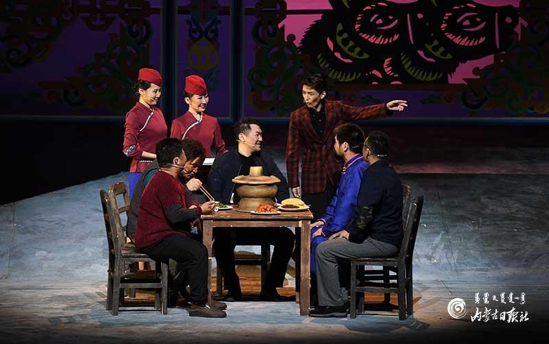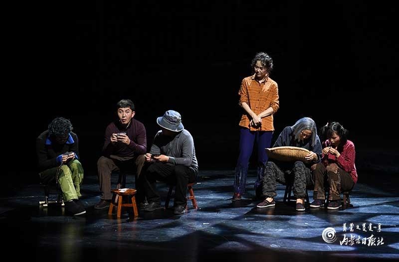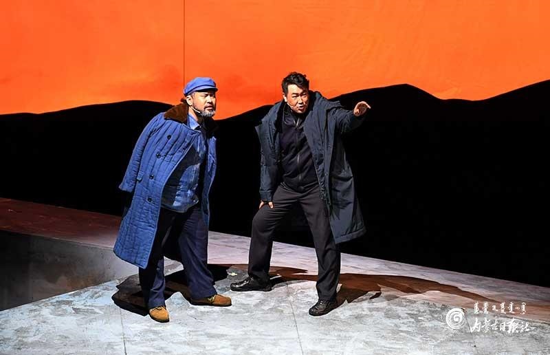 參演《紅手印》的都是來(lái)自草原的蒙古族演員,不僅要完成漢語(yǔ)的臺(tái)詞,還要熟練自然地講出大量?jī)?nèi)蒙古西部方言對(duì)白?!皩?duì)于話劇演員來(lái)說(shuō),臺(tái)詞功底太重要了。為了練好方言,我們好多演員早起練功的時(shí)候嘴里都念念有詞地說(shuō)著西部方言。”演員烏仁朝魯門(mén)說(shuō)。他扮演的新扎木村主任令人印象深刻,一個(gè)一心想帶百姓致富卻屢遭失敗的老黨員形象。“之前表演歷史題材的話劇大多是從影像和資料了解人物,這部戲的題材貼近觀眾們的現(xiàn)實(shí)生活,必須接地氣才能得到認(rèn)可。我通過(guò)寫(xiě)人物小傳的方式,深挖村主任的人物個(gè)性和從失望到燃起希望的內(nèi)心世界,讓觀眾能夠認(rèn)可這個(gè)形象?!睘跞食旈T(mén)說(shuō)。