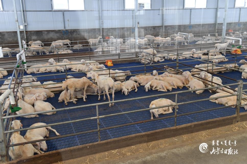 在五原縣金草原現(xiàn)代養(yǎng)殖園,15萬只胡羊在智能化圈舍內(nèi)生活得舒適自在,溫控、噴淋、全自動飲水、電動刮糞裝置一應(yīng)俱全,撒料、消毒等一鍵完成,舒緩的音樂縈繞耳邊。