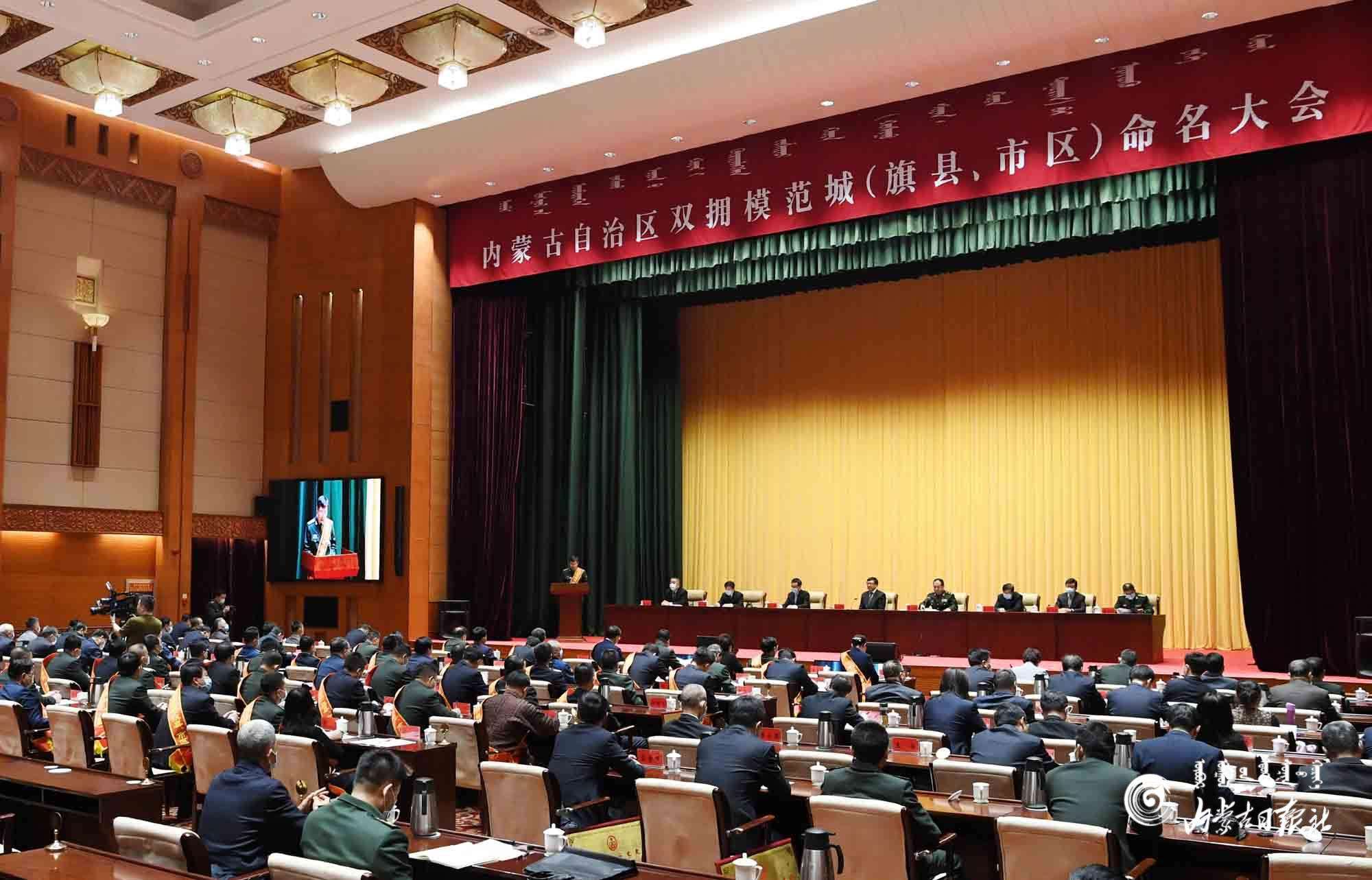 12月22日,內(nèi)蒙古自治區(qū)雙擁模范城(旗縣、市區(qū))命名大會在呼和浩特舉行。內(nèi)蒙古日報記者 袁永紅 攝