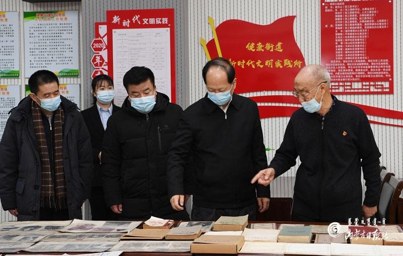 在海拉爾區(qū)神寶小區(qū),石泰峰與自治區(qū)勞模于景斌拉起家常,詳細(xì)了解他十幾年如一日?qǐng)?jiān)守生產(chǎn)一線學(xué)技術(shù)、練本領(lǐng)、搞創(chuàng)新的先進(jìn)事跡。石泰峰說(shuō),實(shí)踐出真知,只要肯鉆研、行行出狀元,新一代的工人和廣大勞動(dòng)者要向勞模學(xué)習(xí),弘揚(yáng)勞模精神,充分發(fā)揮有知識(shí)、懂技術(shù)、善創(chuàng)新的優(yōu)勢(shì),不斷在工作崗位上創(chuàng)造新的業(yè)績(jī)、作出更大貢獻(xiàn)。在天驕家園小區(qū),石泰峰與老黨員祁寶良相談甚歡,他一邊翻看老照片和回憶錄,一邊與老人共同回顧崢嶸歲月。石泰峰說(shuō),老黨員老同志的革命經(jīng)歷是我們黨寶貴的精神財(cái)富,我們要多給年輕人講一講,讓他們銘記光榮革命歷史,珍惜今天幸福生活,更加奮發(fā)有為地建功新時(shí)代。石泰峰叮囑老人保重身體,祝福老人健康長(zhǎng)壽。